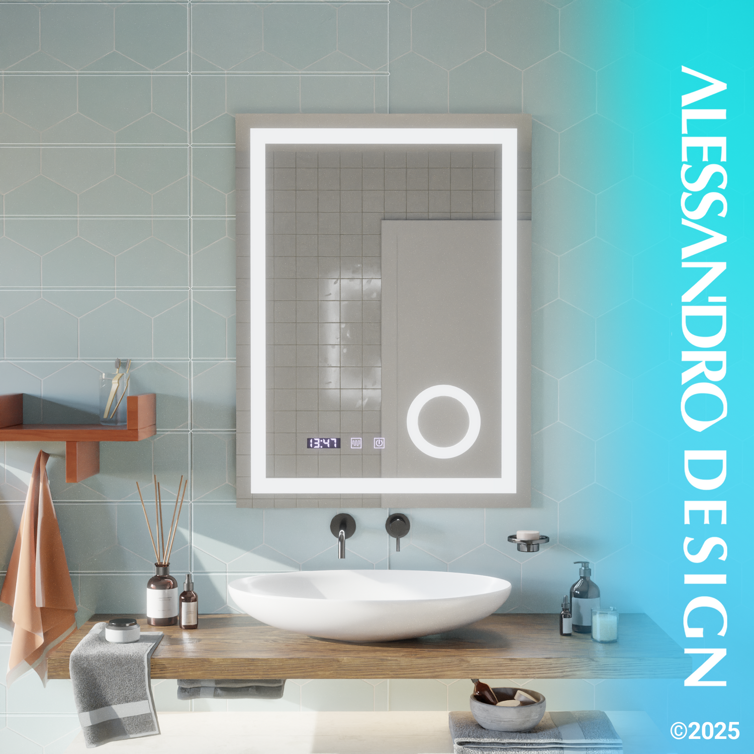 Cu ceas, termometru, lupă cosmetică, iluminare dimabilă și sistem de dezaburire, este soluția completă pentru un spațiu modern, organizat și clar.-