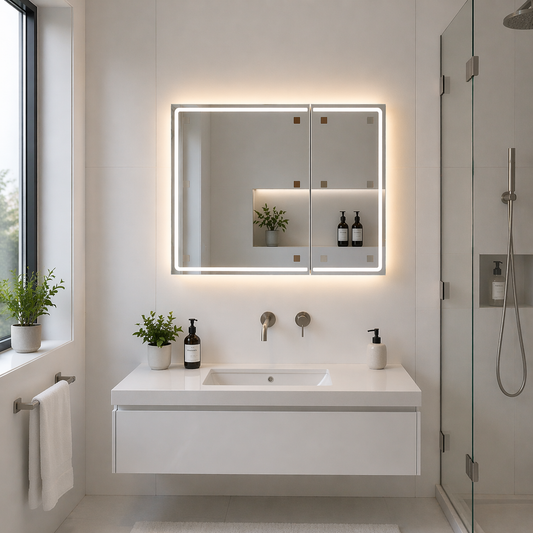 In stockRegular price€212,95Sale price €117,95SaleLED Mirror with Cabinet MODA 80x70 cm White Perimeter Lighting and Touch Sensor