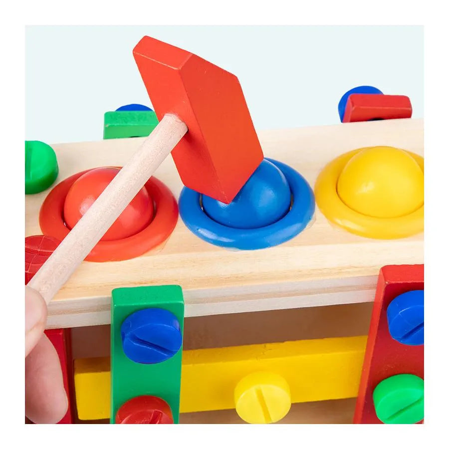 2. Wooden tools: The set includes nails, hammer and wrench, all made of wood, suitable for children's small hands. These tools help little ones develop their manual skills and hand-eye coordination.