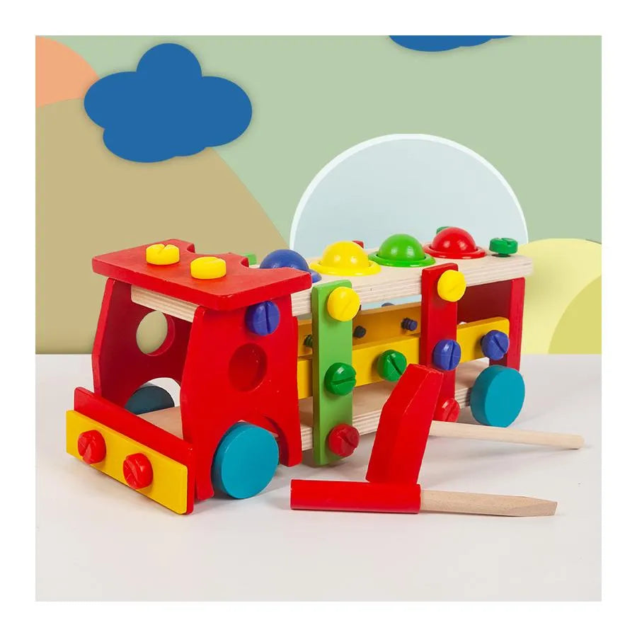 The wooden truck-shaped tool bench is a fun and interactive toy that stimulates creativity and develops your child's fine motor skills. Here are some features of this toy: