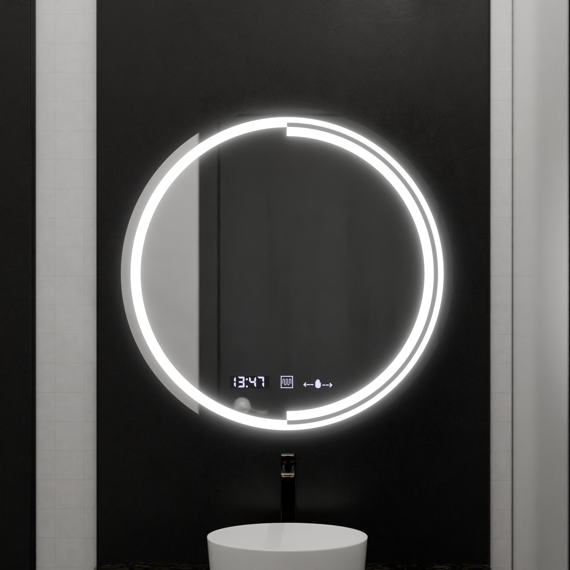 LED Round Mirror, 60cm, Consuel Marcello MotionGlow Sensor, Demister System, Clock & Thermometer, Dimmable