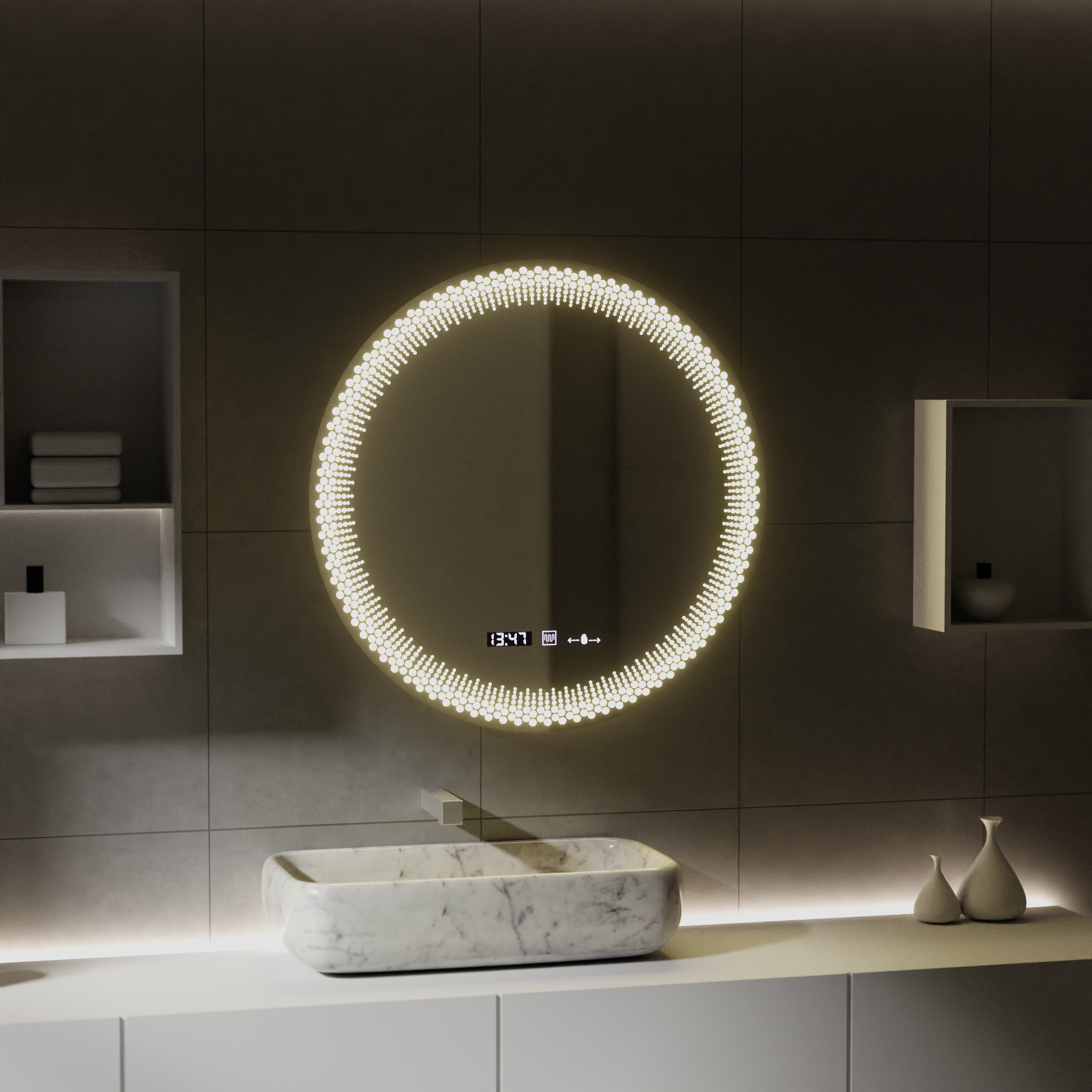 Add a note of modern elegance and advanced technology to your bathroom with round LED stellaire touch mirror. Its perfect circular shape, with a diameter of 60 cm, creates a harmonious focal point, while smart functions give you comfort and control.