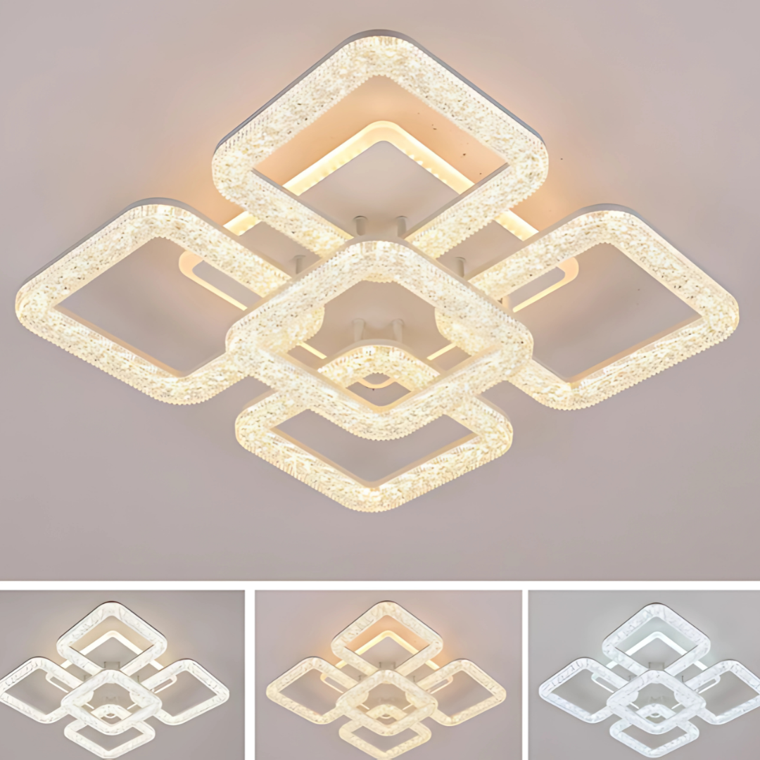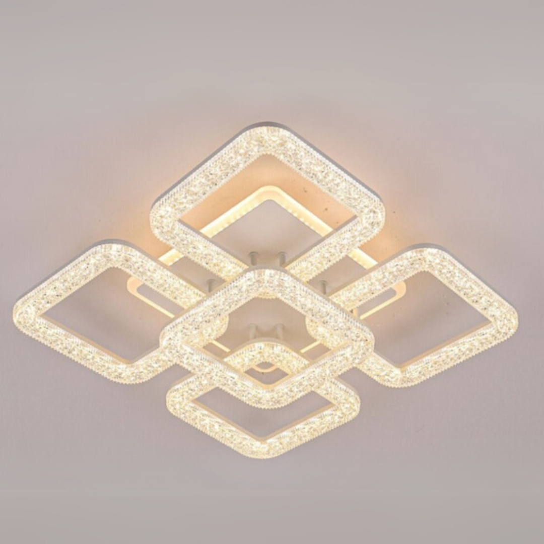 The Astrid LED chandelier with remote control has a power of 114W and a luminous flux of 9120 lm, offering adjustable lighting in three color temperatures: 3000K, 4000K and 6000K (warm, cold, neutral). It is equipped with LED strip, has a lifetime of 25,000 hours and it works at 220–230V. The control is done through remote control or classic switch, being complete Dimmable. The body is made of metal and acrylic, with mounting on ceiling. The protection is of type IP20, and the feeding is done directly to the network. Recommended for bedroom, dining room or living room.