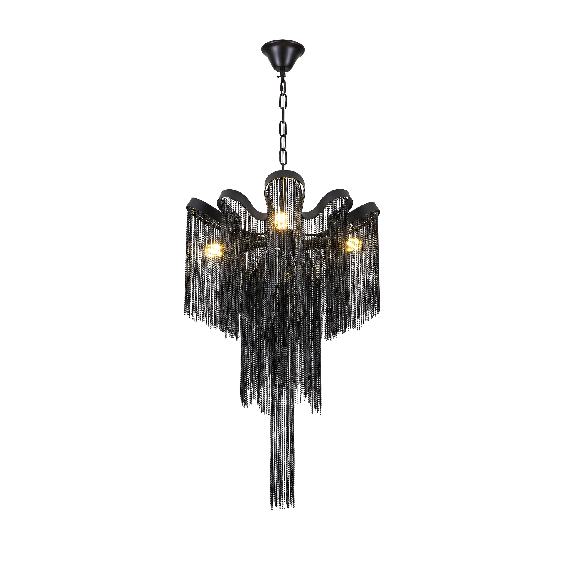Iron and aluminum chandelier with modern design, black color.