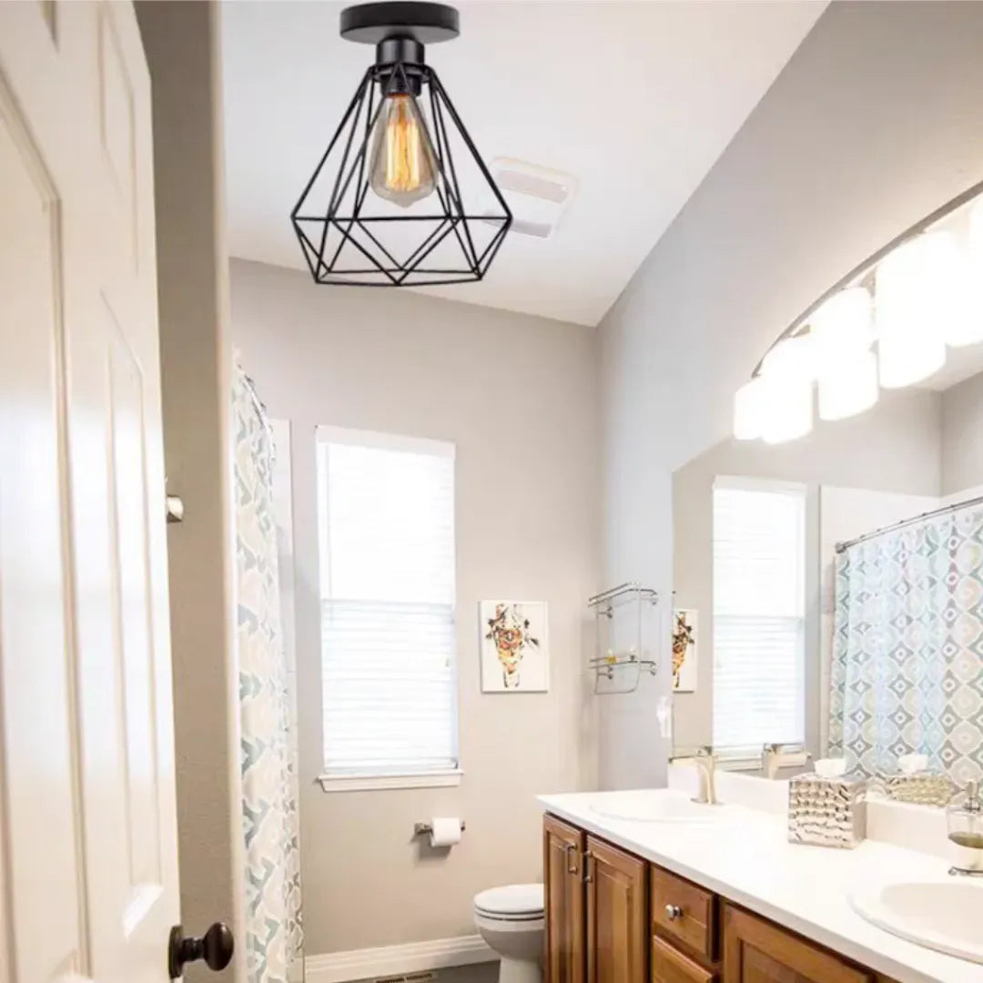 Chandelier with diamond shade GRACE, with fixed attachment to the ceiling, is suitable for compact spaces such as hallways, bathrooms or dressing rooms. It works with a single bulb E27 (not included), offering spot lighting, ideal for transit rooms or secondary spaces.