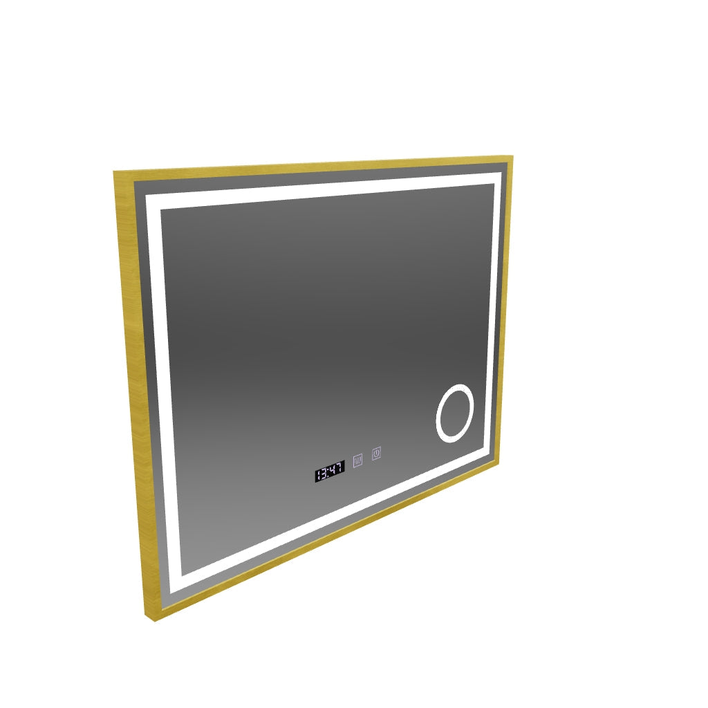 CLARUS Touch LED Mirror De-fogging System, Clock and Temperature 80x60 cm Brushed Gold Frame Cosmetic Magnifier