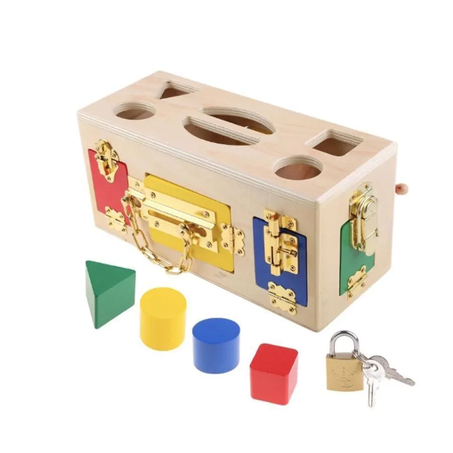 Montessori Educational Toy Lock Cube, 5 Pieces, Multicolor, Wood