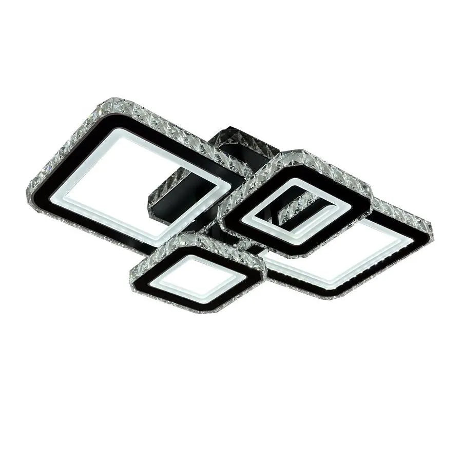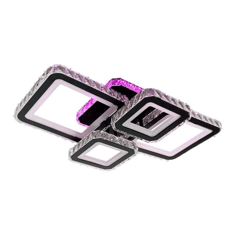 LED chandelier with remote control and crystal BLAKELY RGB 154W, 4 Squares, Cold/Warm/Neutral light, Dimmable, Black