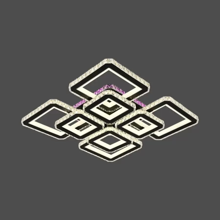 LED chandelier with remote control and crystal BLAKELY RGB 163W, 8 Squares, Cold/Warm/Neutral light, Dimmable, Black