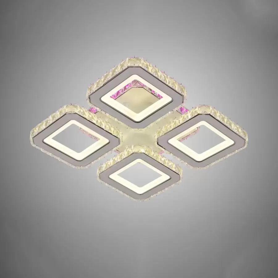 LED chandelier with remote control and crystal BLAKELY RGB 74W, 4 Squares, Cold/Warm/Neutral light, Dimmable, White