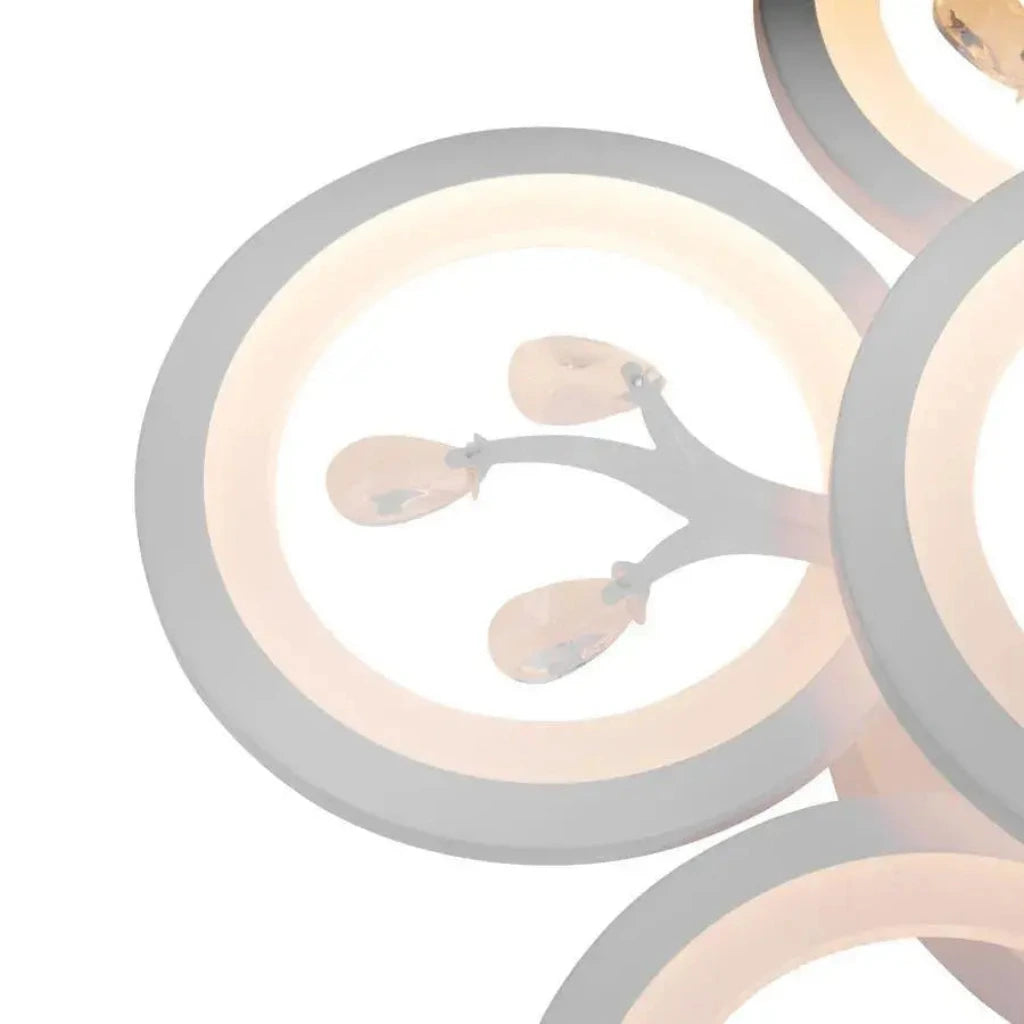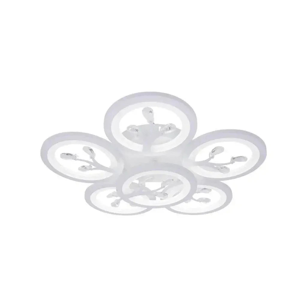 The six white elements, whose specific shape would define the style (can be stylized arms, geometric shapes, etc.), are enriched with crystals that will reflect and refract the integrated LED light, creating a sparkling effect and a sophisticated atmosphere. The included remote control gives you control over color temperature (cool, warm or neutral) and light intensity (dimmable), allowing you to customize the lighting according to the moment.