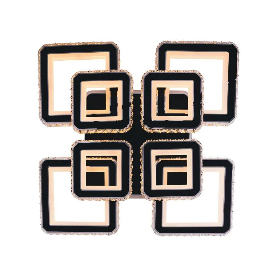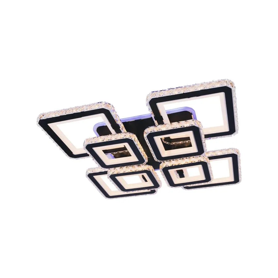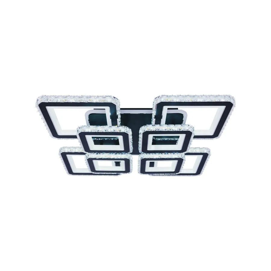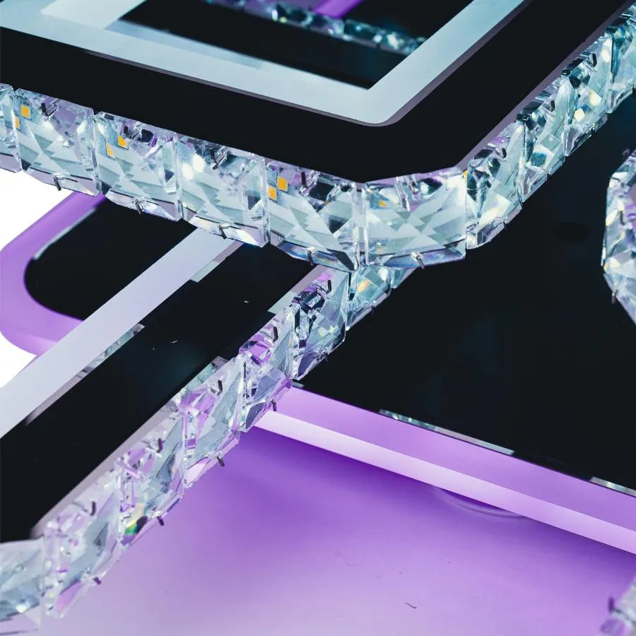 LED chandelier with remote control and crystal LEILA RGB 237W, 8 Squares, Cold/Warm/Neutral light, Dimmable, Glossy Black Chrome