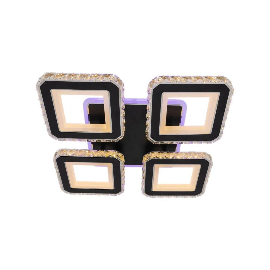LED chandelier with remote control and crystal LEILA RGB 79W, 4 Squares, Cold/Warm/Neutral light, Dimmable, Glossy Black Chrome