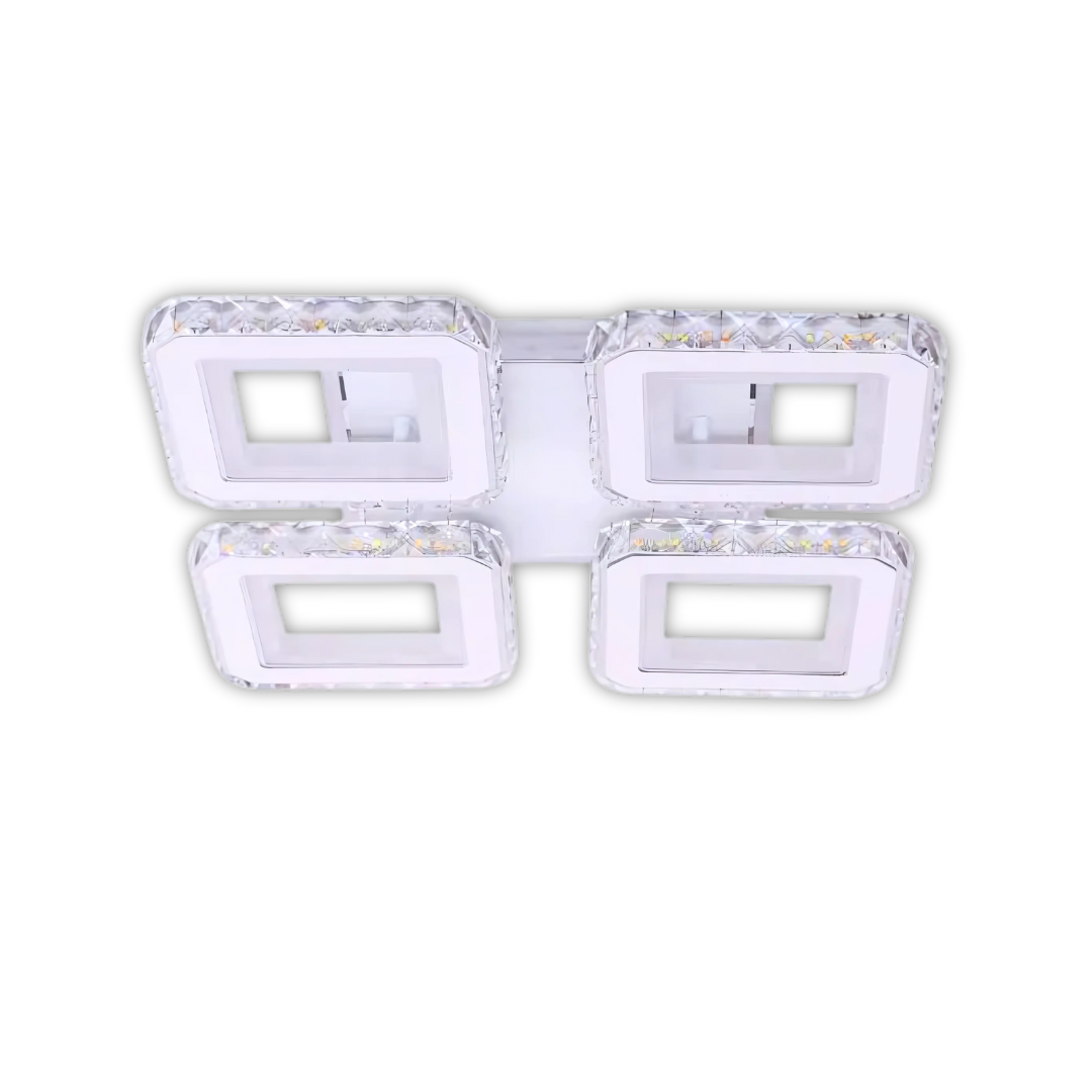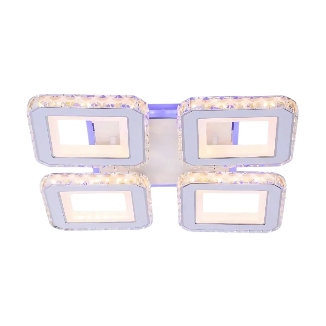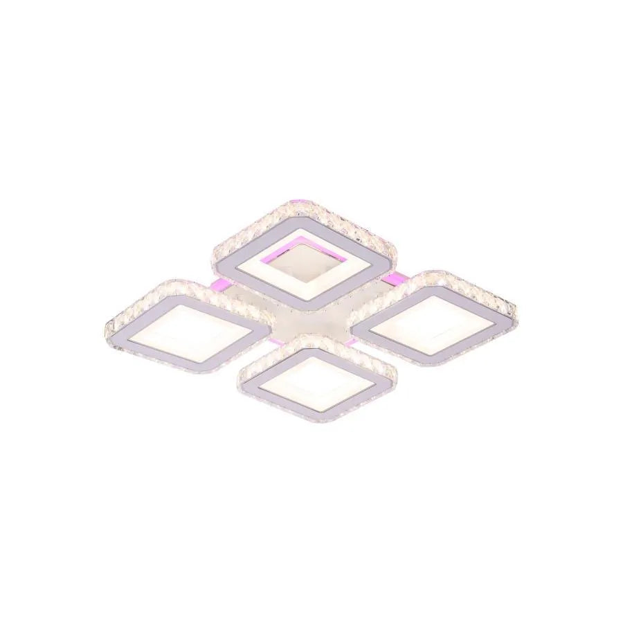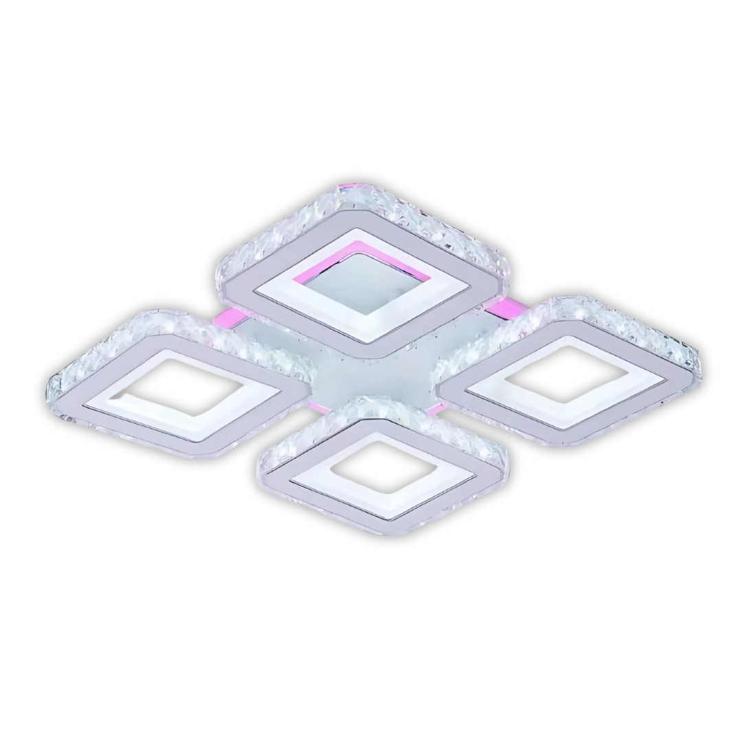 LED chandelier with remote control and crystal LEILA RGB 79W, 4 Squares, Cold/Warm/Neutral light, Dimmable, Shiny Chrome White