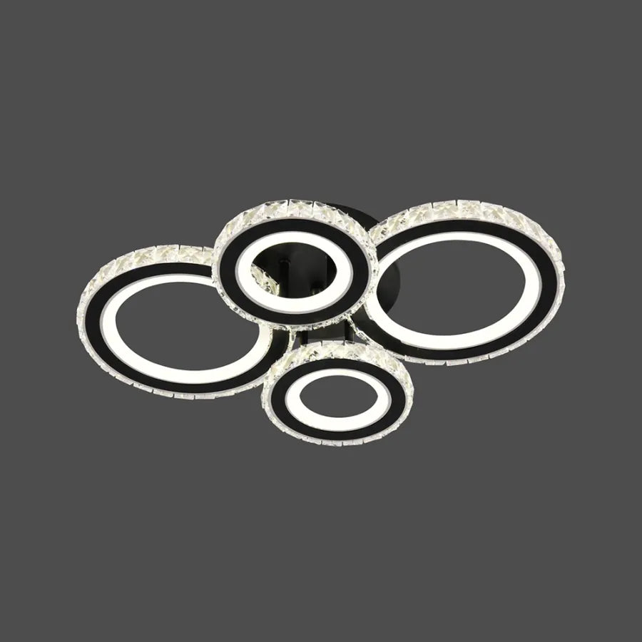 LED chandelier with remote control and crystal NOVA ROTONDA RGB 68W, 4 Circles, Cold/Warm/Neutral light, Dimmable, Black