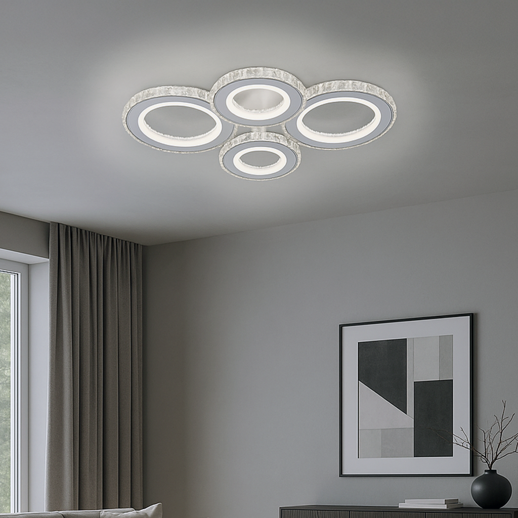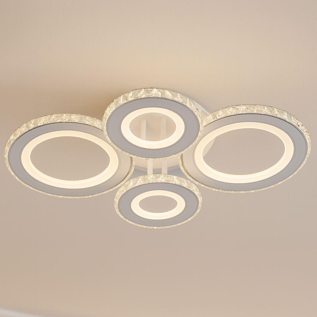 LED chandelier with remote control and crystal NOVA ROTONDA RGB 86W, 4 Circles, Cold/Warm/Neutral light, Dimmable, White