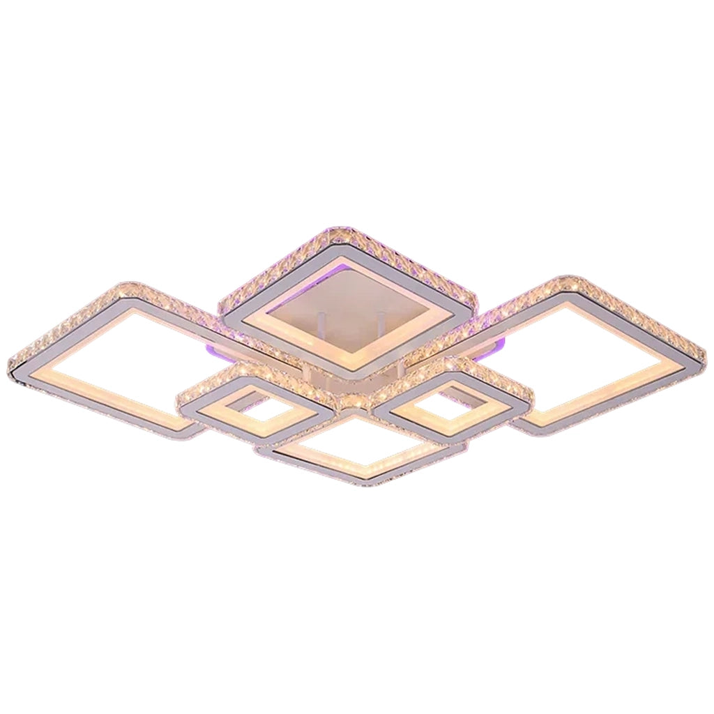 LED chandelier with remote control and crystal QUADRIS RGB 175W, 6 Squares, Cold/Warm/Neutral Light, Dimmable, White