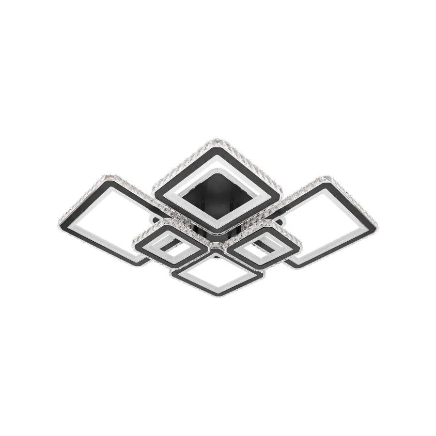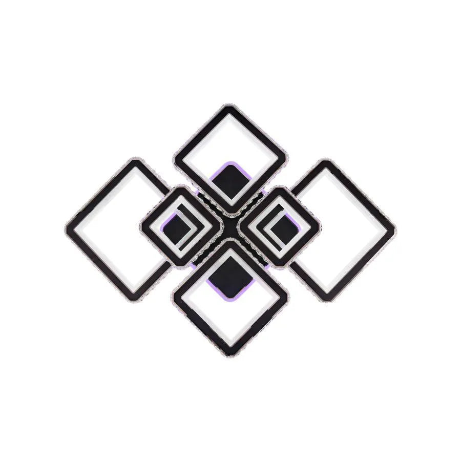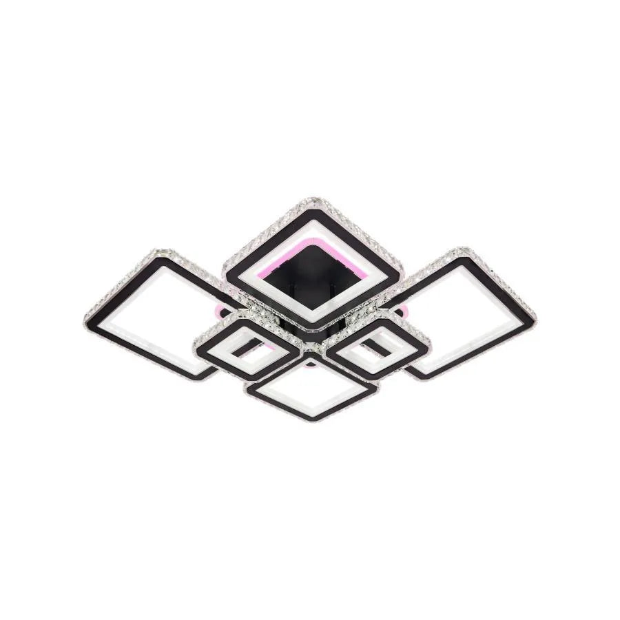 LED chandelier with remote control and crystal QUADRIS RGB 330W, 6 Squares, Cold/Warm/Neutral light, Dimmable, Black
