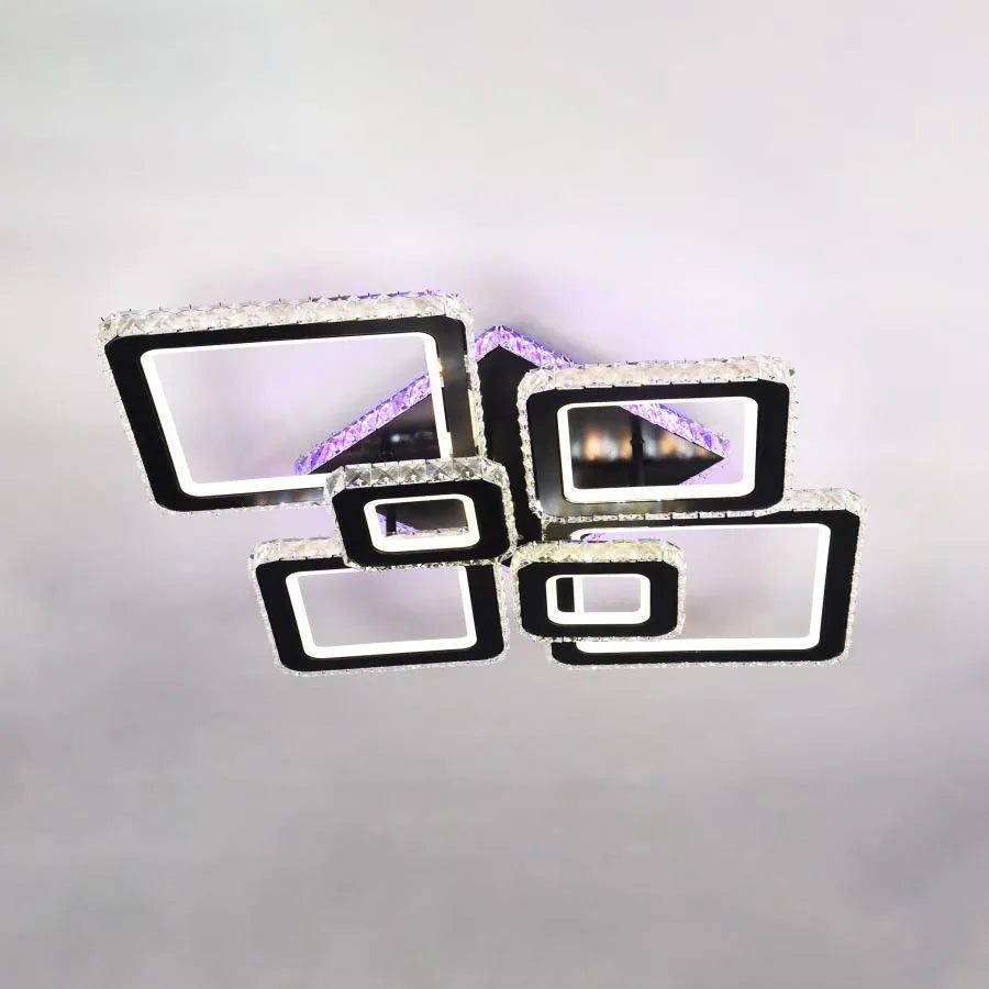 The six black squares, embellished with crystals, create an elegant and sophisticated geometric look. The crystals will reflect and refract the integrated LED light, generating a sparkling effect and a luxurious atmosphere. The included remote control gives you control not only over the color temperature (cool, warm or neutral) and light intensity (dimmable), but also over the function RGB, which allows you to choose from a wide range of colors to create personalized and vibrant lighting effects.