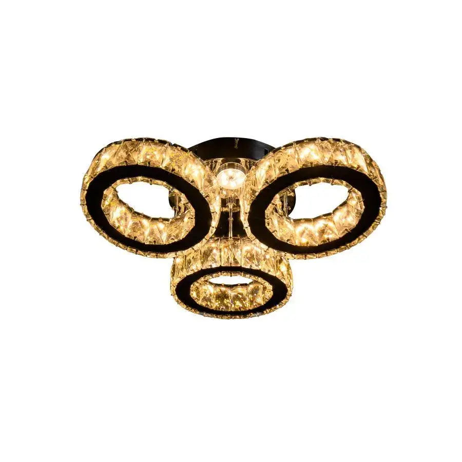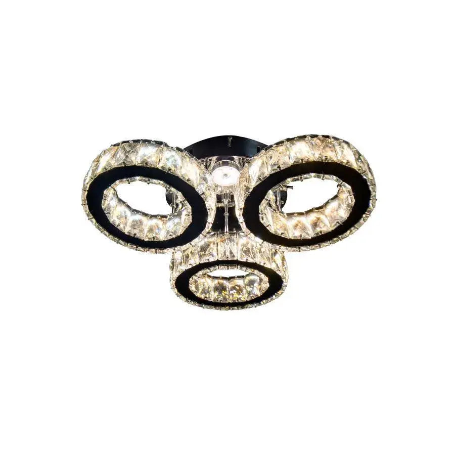 The TIMOTEI remote-controlled LED crystal chandelier is a modern and elegant lighting piece with a design consisting of 3 concentric circles, finished in black and decorated with sparkling crystals. With a power of 30W, it offers versatile lighting and added sophistication to your space.