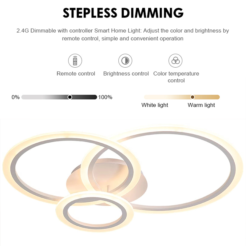 LED chandelier with remote control BETTY 41W, 3 Circles, Cold/Warm/Neutral light, Dimmable, White