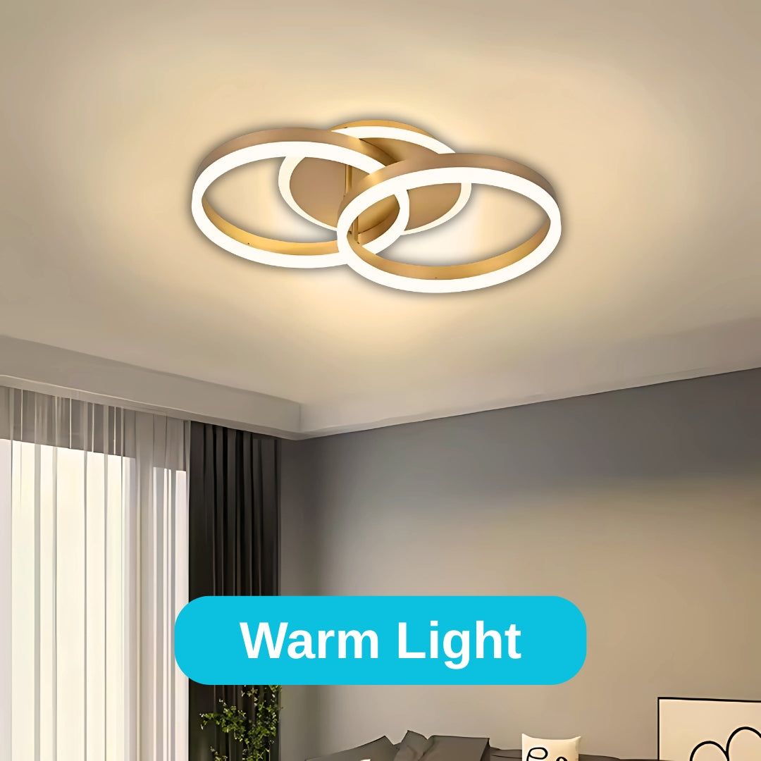 Introduce a sophisticated design element and adaptable lighting into your space with the Stephanie LED Chandelier. Its attractive design, composed of two concentric circles finished in one golden elegant, adds a touch of modern luxury to any interior.
