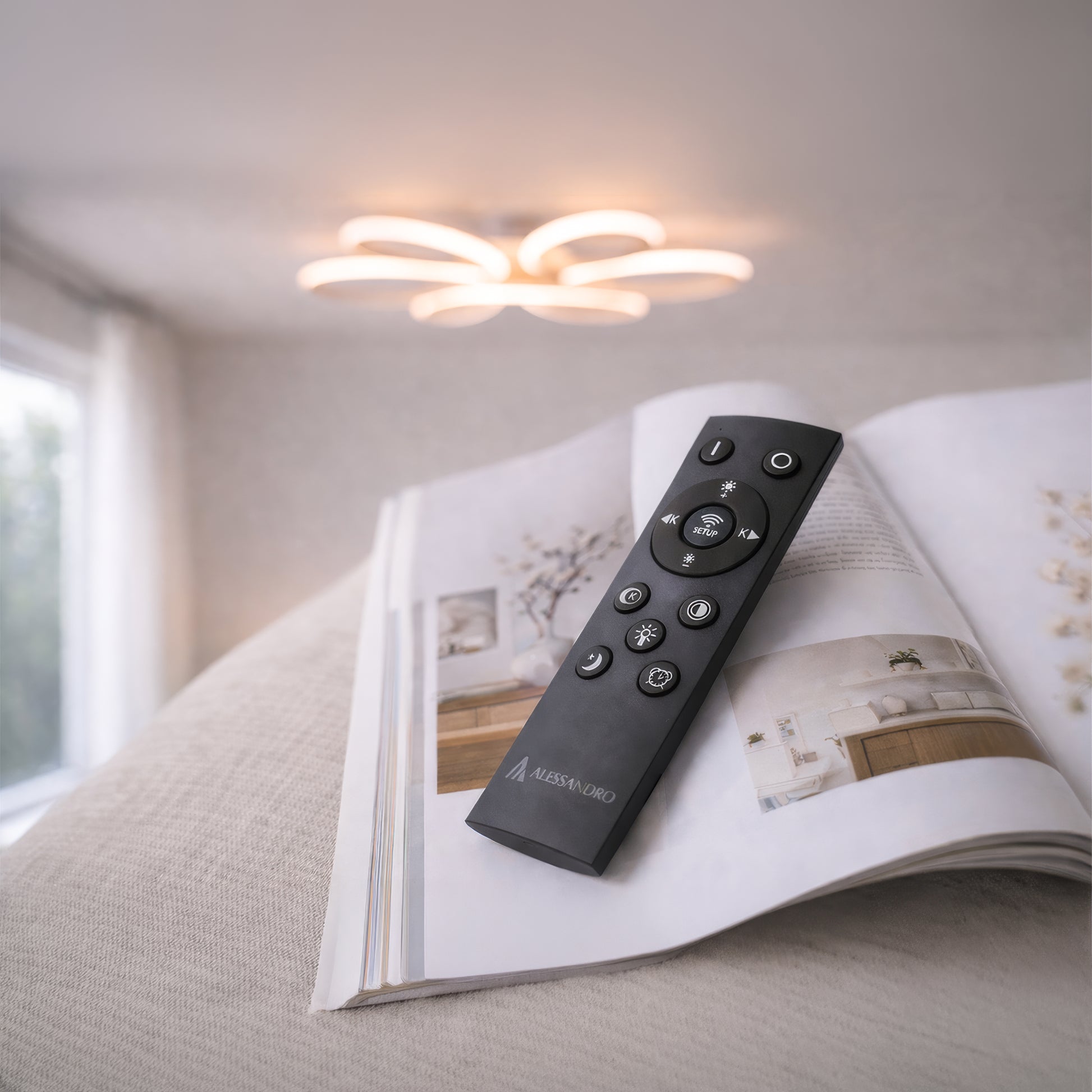 Although it has a single square element, its design can include details that give it a distinct look. Being LED, it provides a uniform and economical light. The included remote control adds extra convenience, allowing you to adjust the light temperature (cool, warm or neutral) and intensity (dimmable) from a distance, thus creating the ideal atmosphere for any moment.