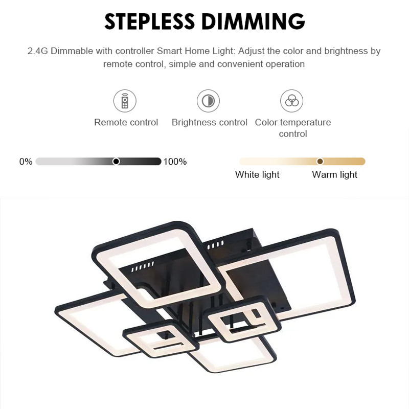 LED chandelier with remote control ELLA 124W, 6 Squares, Cold/Warm/Neutral light, Dimmable, Black