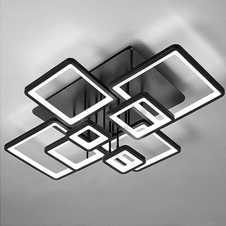 The black finish of the chandelier accentuates the modern lines of the square design and adds a touch of elegance and sophistication to the room. The 8-square size suggests a significant presence, perfect for large living rooms, dining rooms or even modern commercial spaces.