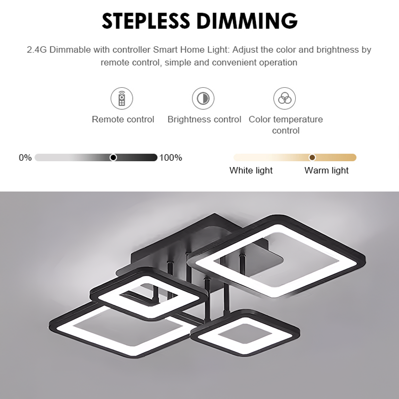 LED chandelier with remote control ELLA 85W, 4 Squares, Cold/Warm/Neutral light, Dimmable, Black