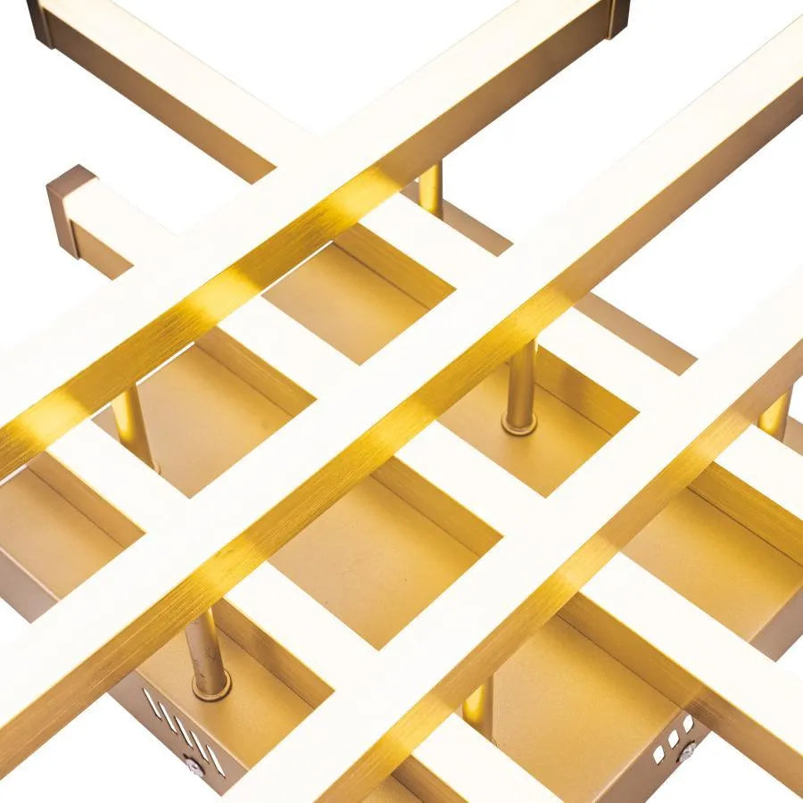 The MORA remote control LED chandelier is a modern and elegant piece of lighting with a linear design, 120W power and a glossy gold finish.