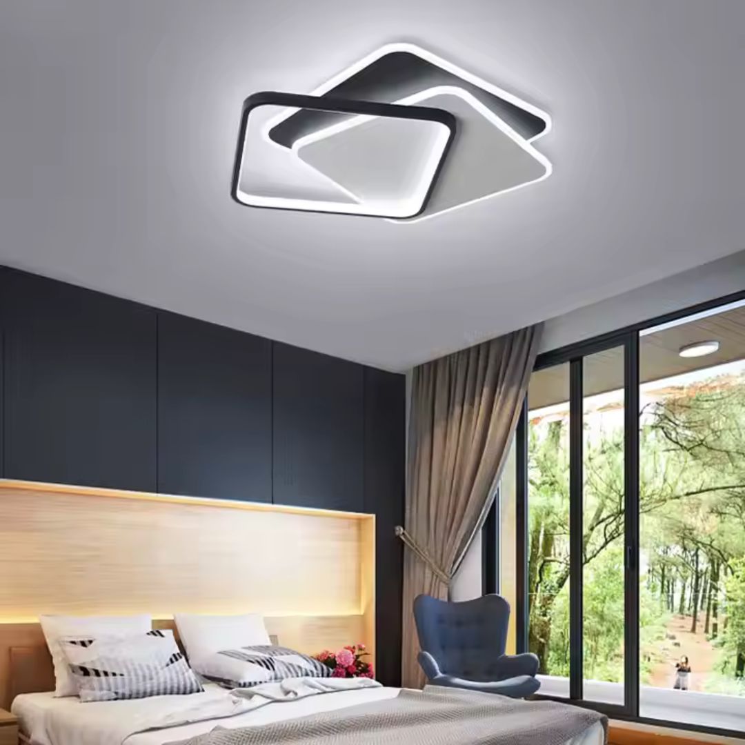 Illuminate your space with elegance and modernity with the Oblico LED Chandelier. This distinctive ceiling lamp features a contemporary design composed of three overlapping squares in an oblique manner, creating a dynamic and eye-catching visual effect. The matte black finish lends a sophisticated air and integrates perfectly into various interior styles, from minimalist to modern.