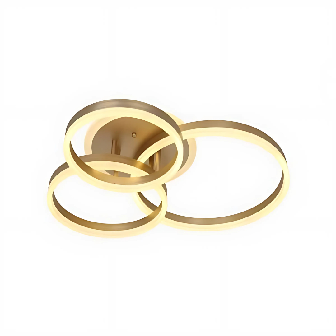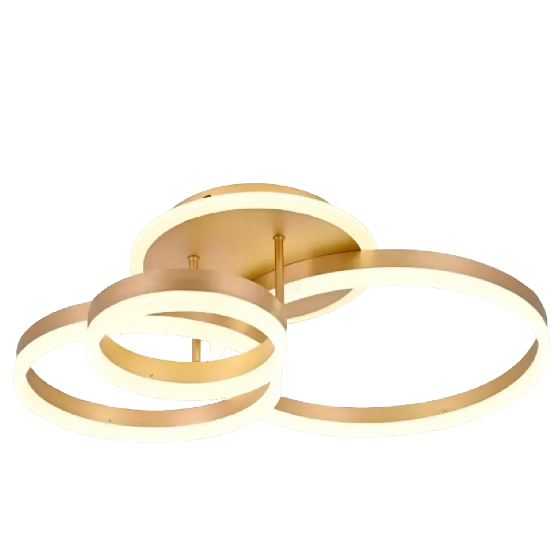 The golden finish of the structure adds a touch of luxury and warmth, transforming the chandelier RIGA LILITH into an attractive focal point of the space. The 3 circles, arranged in a balanced and modern manner, ensure an even distribution of light, creating a pleasant and comfortable environment.