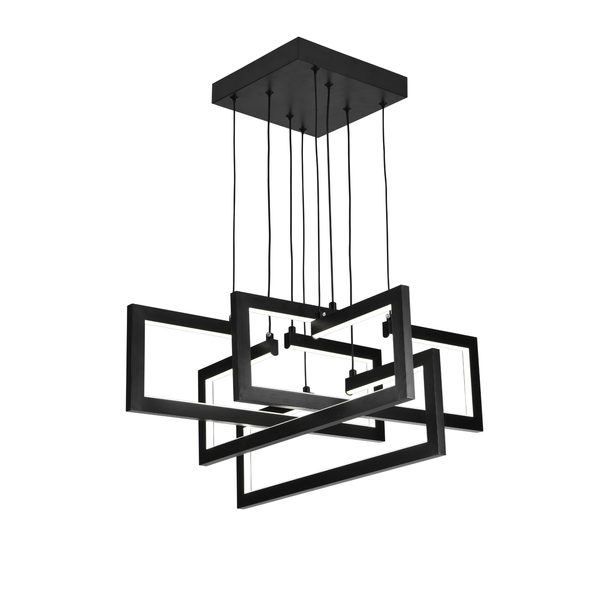 LED chandelier with remote control, Suspended 98W, 4 Elements, Cold/Warm/Neutral light, Dimmable, Adjustable height, Black
