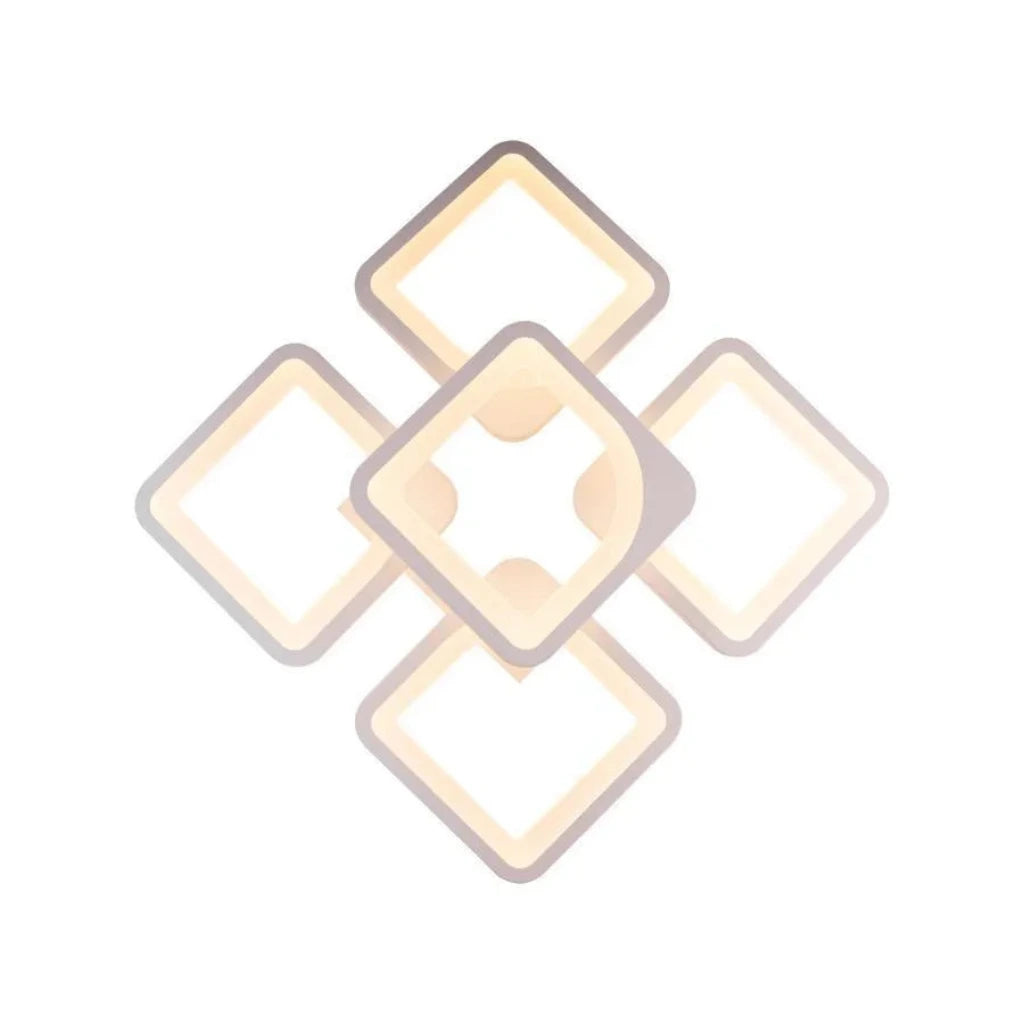 The ZOE Remote Control LED Chandelier is a modern and powerful lighting piece with a design consisting of five stylized squares, finished in white. With a power of 96W, it offers ample and versatile lighting for various spaces.
