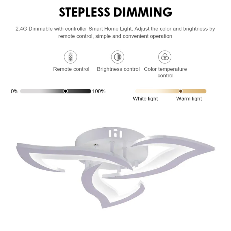 LED chandelier with remote control LOTUS 34W, 3 Petals, Cold/Warm/Neutral light, Dimmable, White