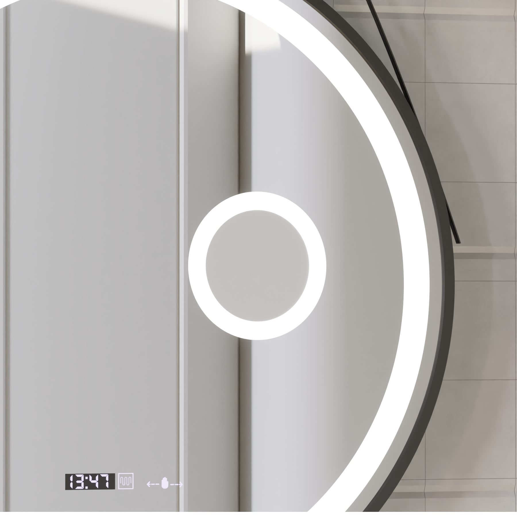 Enrich your bathroom with a unique design and intelligent functionality through the Motionglow Micah Marcello Motionglow Sensor mirror. With a diameter of 60 cm, this mirror combines a classic shape with modern details, advanced technology and a sophisticated finish, bringing an extra style and comfort to your daily routine.