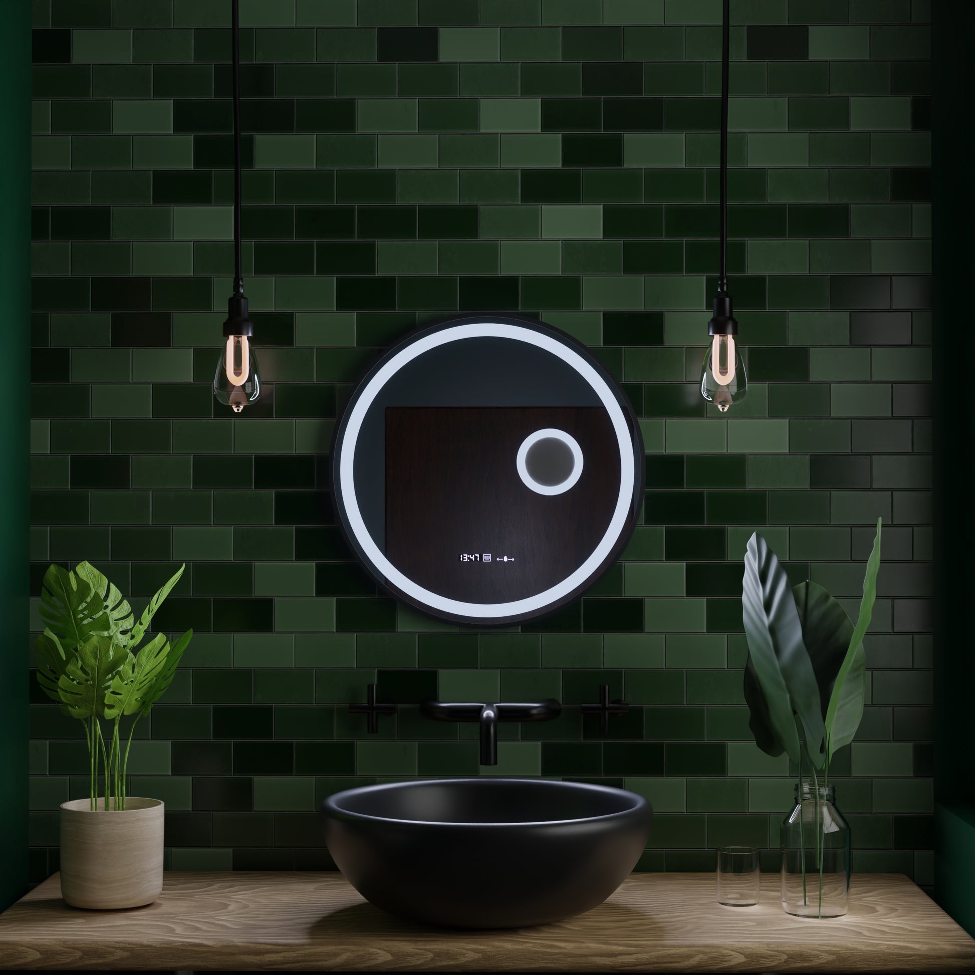 LED Round Mirror, 60cm, Micah Marcello MotionGlow Sensor, Demister System, Clock & Thermometer, Cosmetic Magnifier, Dimabila