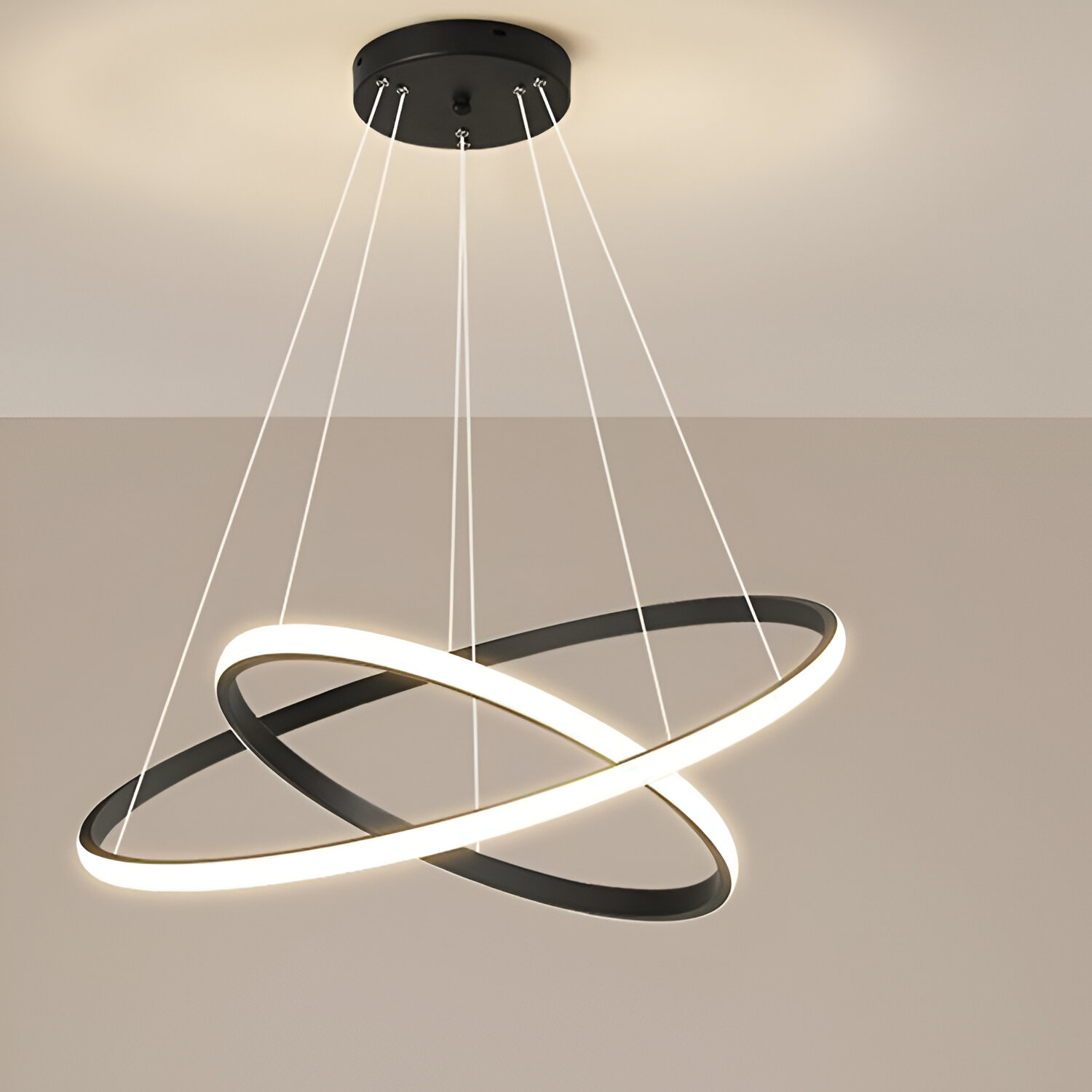 Add a touch of contemporary style and versatility to your home lighting with the RICCI LED chandelier. Its minimalist design, composed of two elegant circles, finished in black, brings a sophisticated and modern air to any interior.