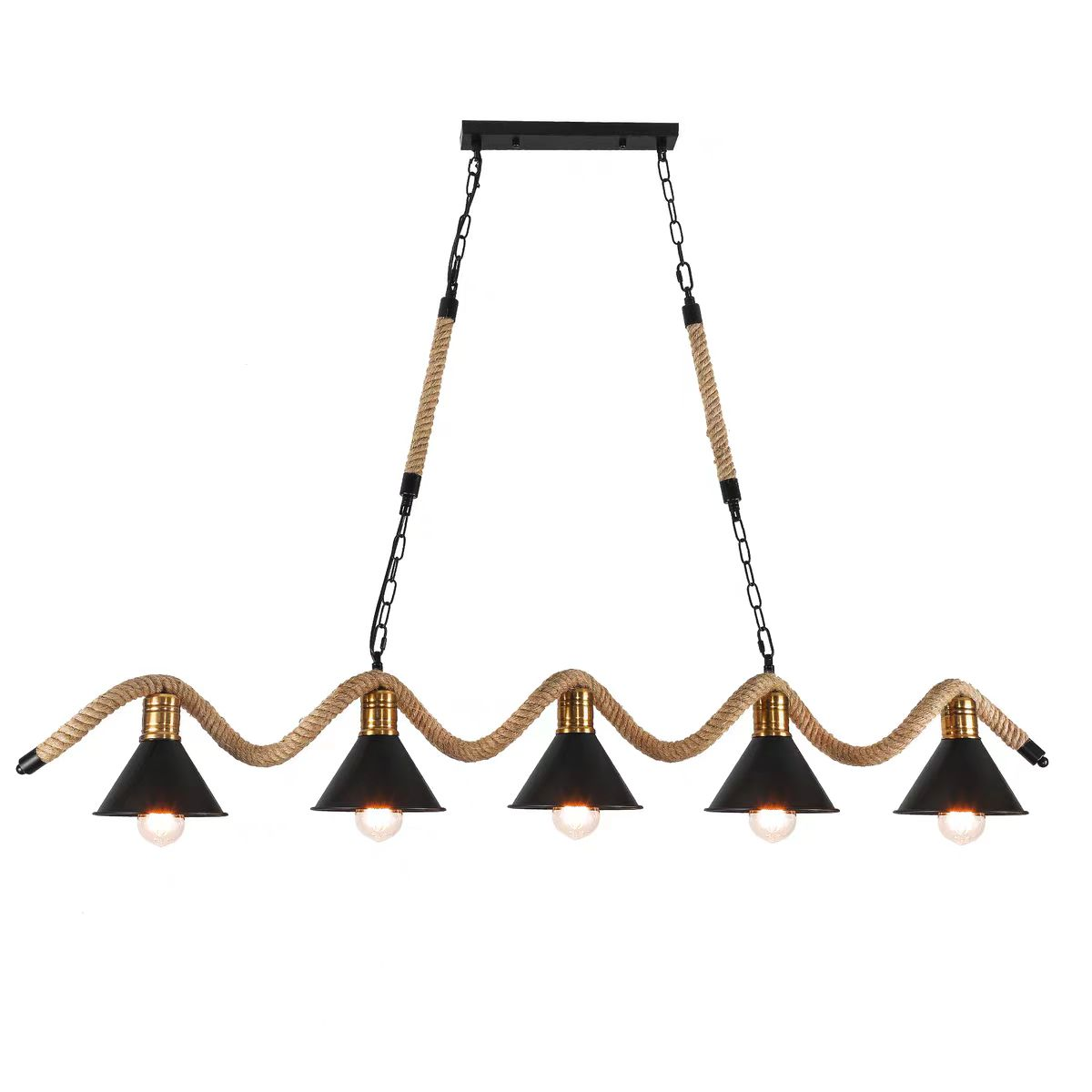 Rope Chandelier, 5*E27, Brown, Metal and Rope