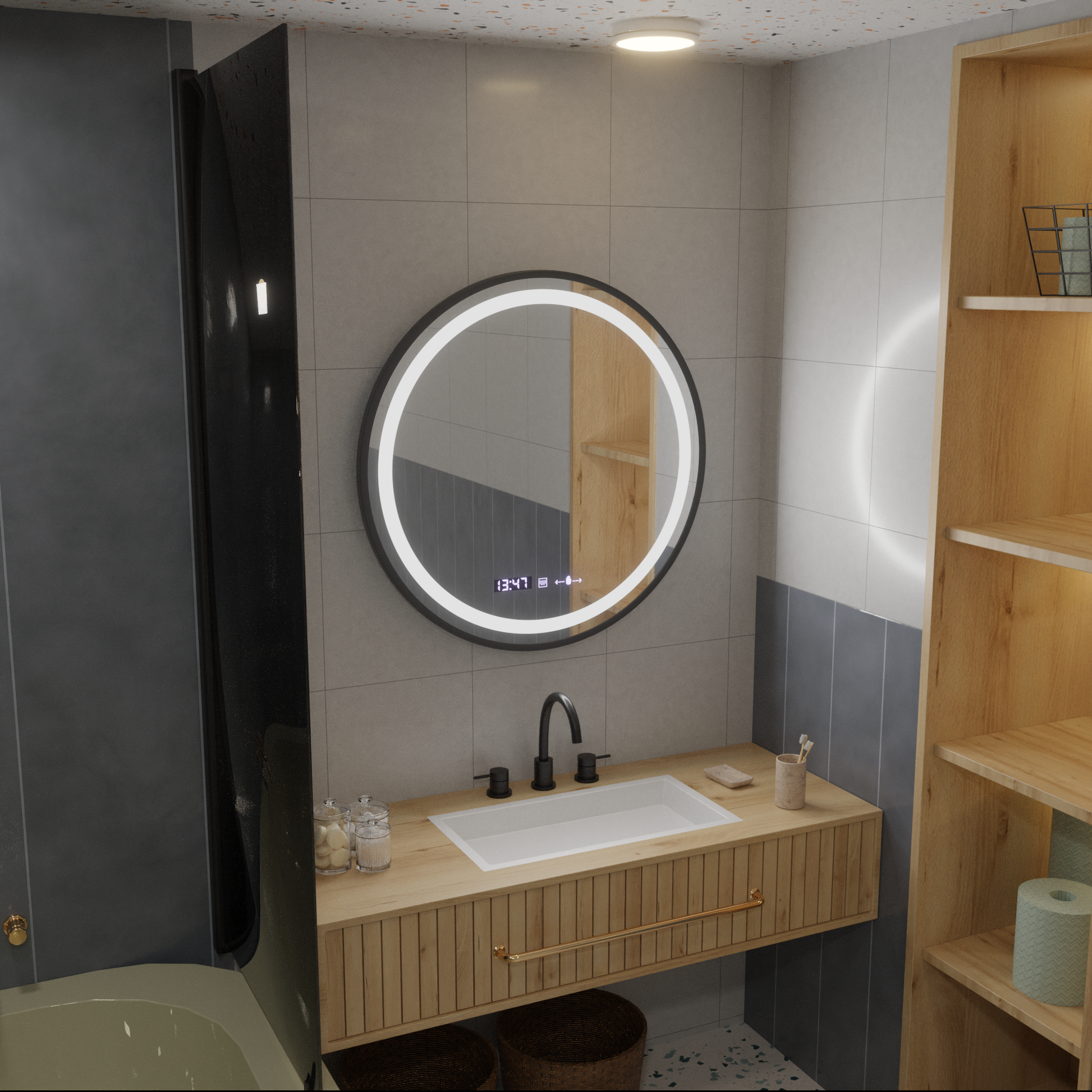 Dress your bathroom in a sophisticated aura with the Celeste Majeste Noir MotionGlow Marcello Round LED Mirror. With a generous diameter of 80cm and a deep black finish, this mirror becomes an elegant focal point, combining modern design with advanced technology to enhance your daily routine.