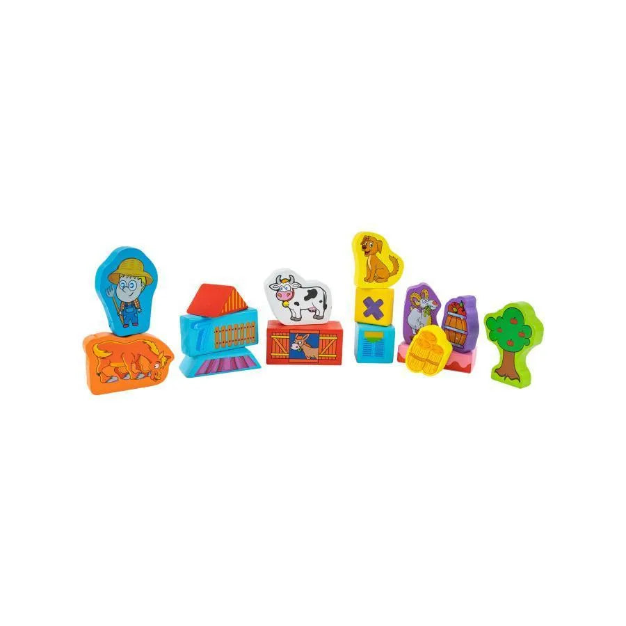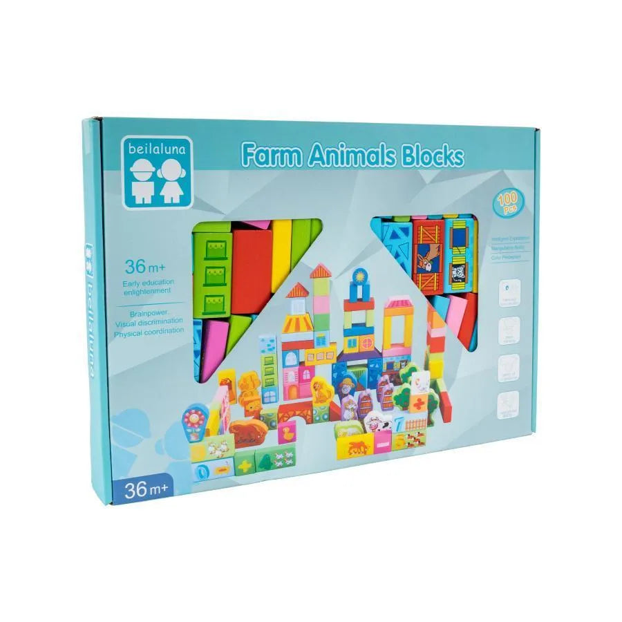 Farm Animals Cube Puzzle Game for Construction, 100 Pieces, Wood