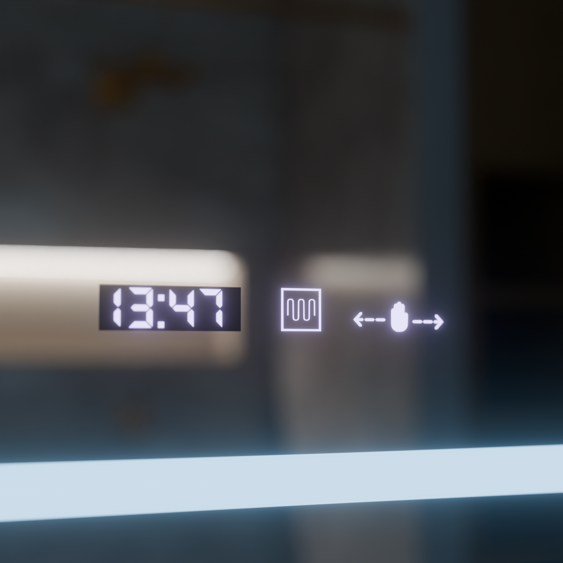 Rectangular LED mirror 120x80 cm - Motionglow Marcello It brings to the forefront the advanced functionality in a generous and elegant format. Dimable LED lighting, proximity sensor activation and intelligent functions-disabilities, clock, thermometer and integrated cosmetic magnifying-transform the mirror into a trusted ally for the daily routine. Perfect for spacious baths or private spas.