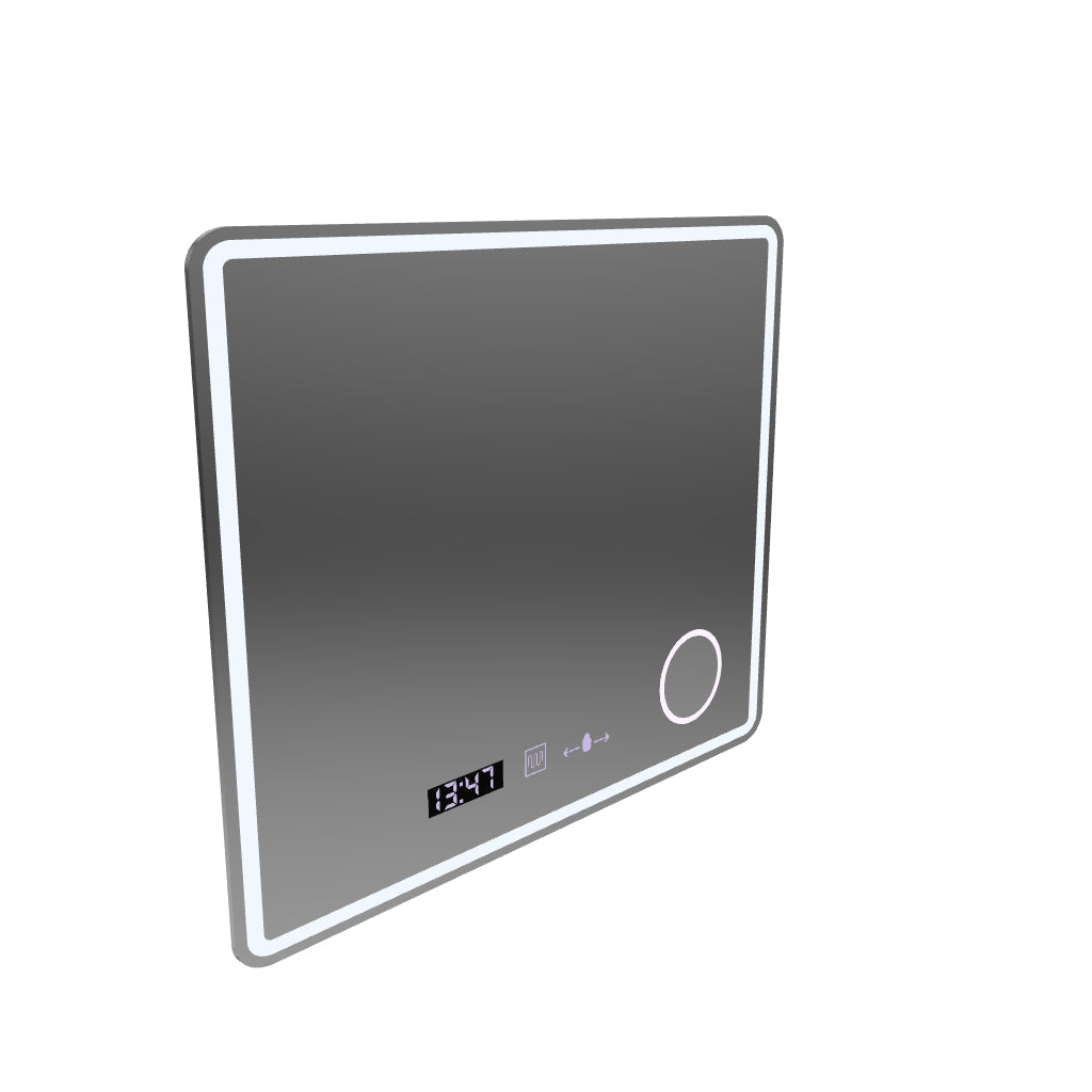 Rectangular LED Mirror, 90x75cm, Riflesso MotionGlow Marcello, Demister System, Clock & Thermometer, Cosmetic Magnifier, Dimable