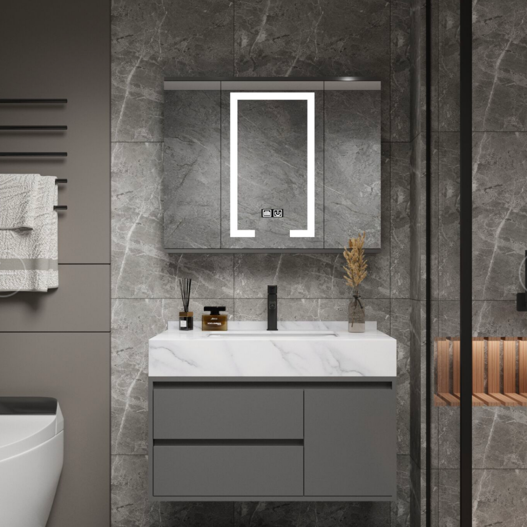 SANTORINI Bathroom Furniture Set, 80x50cm, 2 Pieces, Gray and White