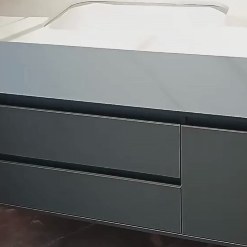 Lower Body (Furniture with Sink): The basic furniture is also suspended, allowing easy cleaning of the floor. It has drawers for storage and integrates a sink directly into the countertop. The design with cast basin creates a continuous surface, without joints, easy to maintain and with a modern appearance.