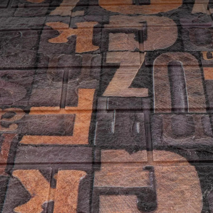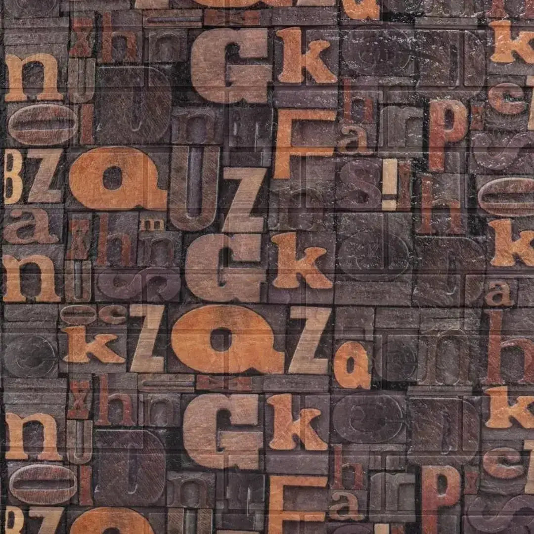 Set of 10 3D Self-Adhesive Wallpaper Brown Soft Foam, 80cmx70cmx6mm, Dark Brown Letters Pattern
