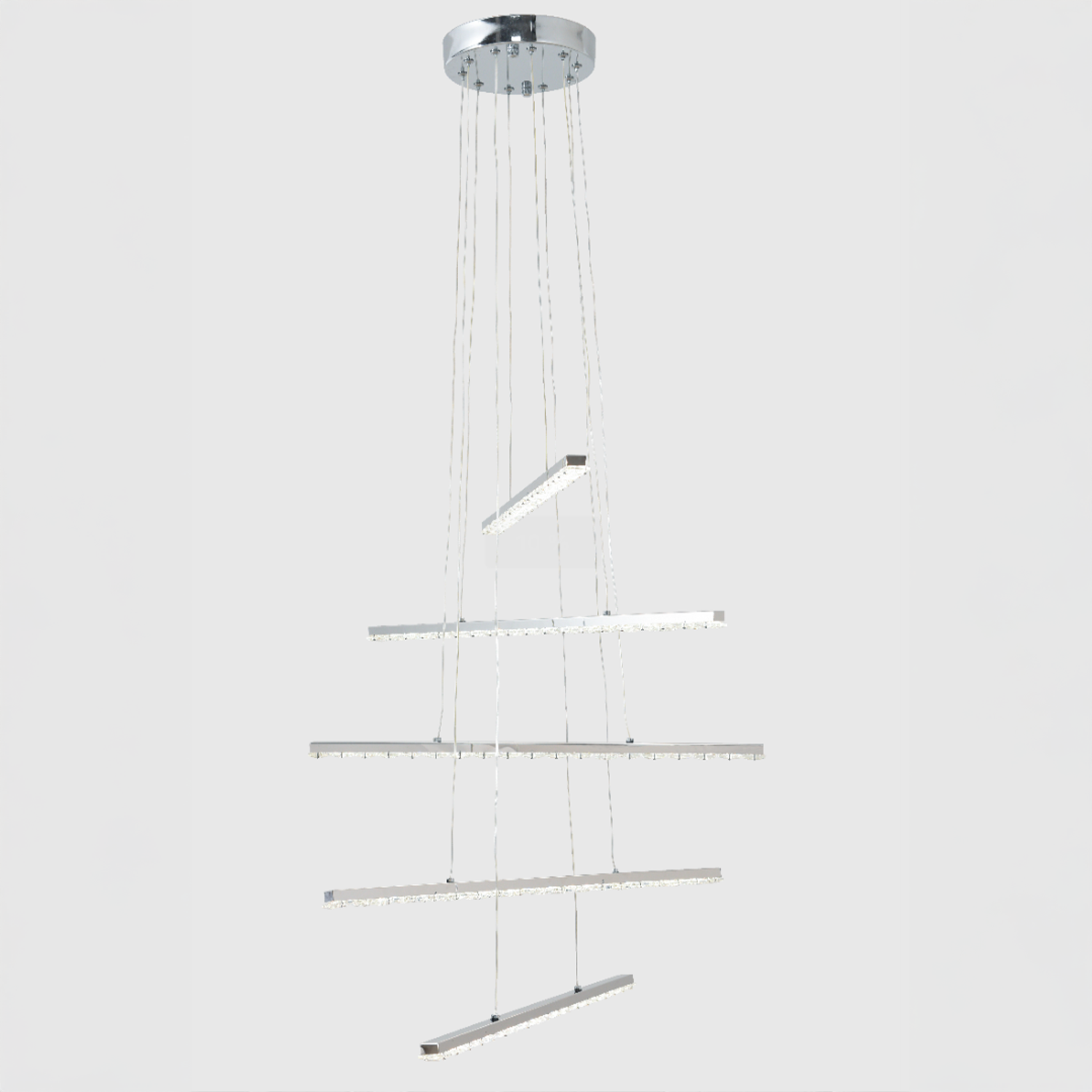 Dress up your space with contemporary sophistication and fully customizable lighting with the LIBORIA LED chandelier. Its sleek and minimalist design, finished in a sophisticated shade of silver, adds a touch of modern and bright style to any room.