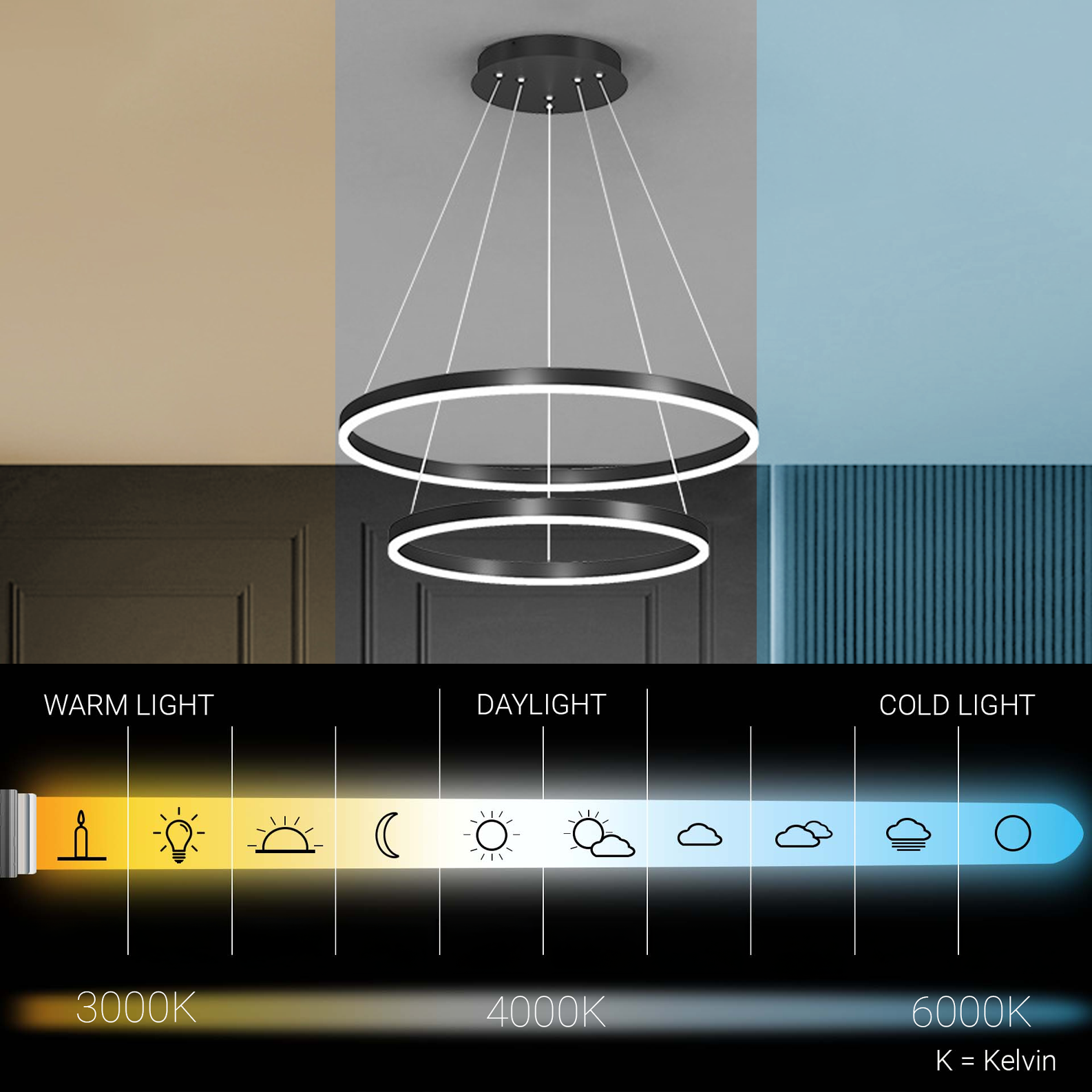 Suspended LED chandelier with remote control CASIANA 41W, 2 Circles, Cold/Warm/Neutral light, Dimmable, Black, Height Adjustable