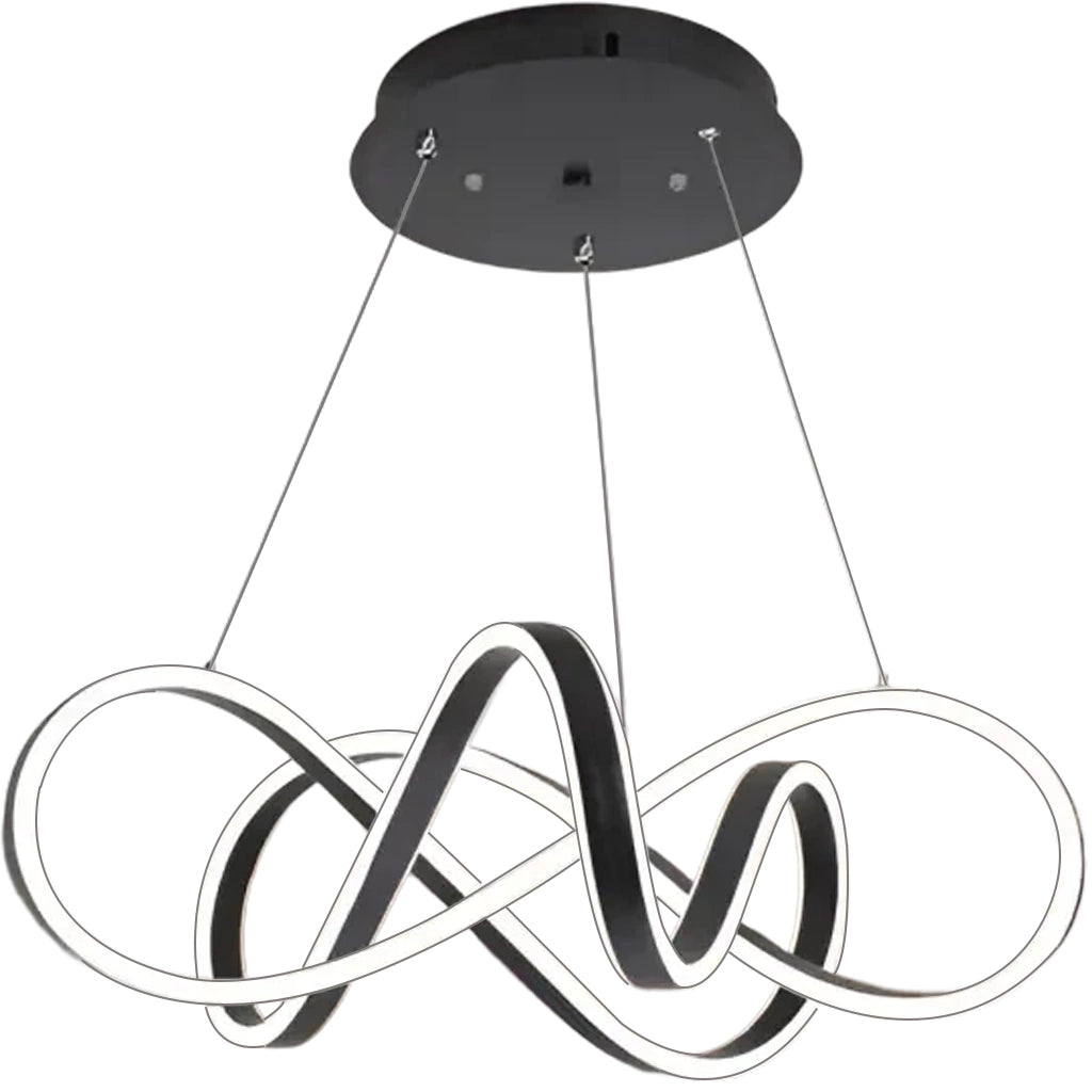 The 69W INFINITY HALO LED Remote Control Chandelier is a modern and impressive piece of lighting finished in elegant black. Its 'Infinity Halo' design suggests a continuous or multi-dimensional appearance, often achieved through circular or wavy shapes. This chandelier offers remarkable flexibility in lighting, allowing selection between cool, warm and neutral light, thus adapting to any occasion or preference. The dimming function, controlled by the included remote control, gives you the possibility to adjust the intensity of the light to create the perfect atmosphere. An additional advantage is the adjustable height, which allows the chandelier to be adapted to the specifics of each room. With a power of 69W, it provides generous lighting, being ideal for spacious living rooms, dining rooms or other areas where a strong visual impact and adaptable light is desired. The black finish adds a sophisticated and contemporary air to any decor